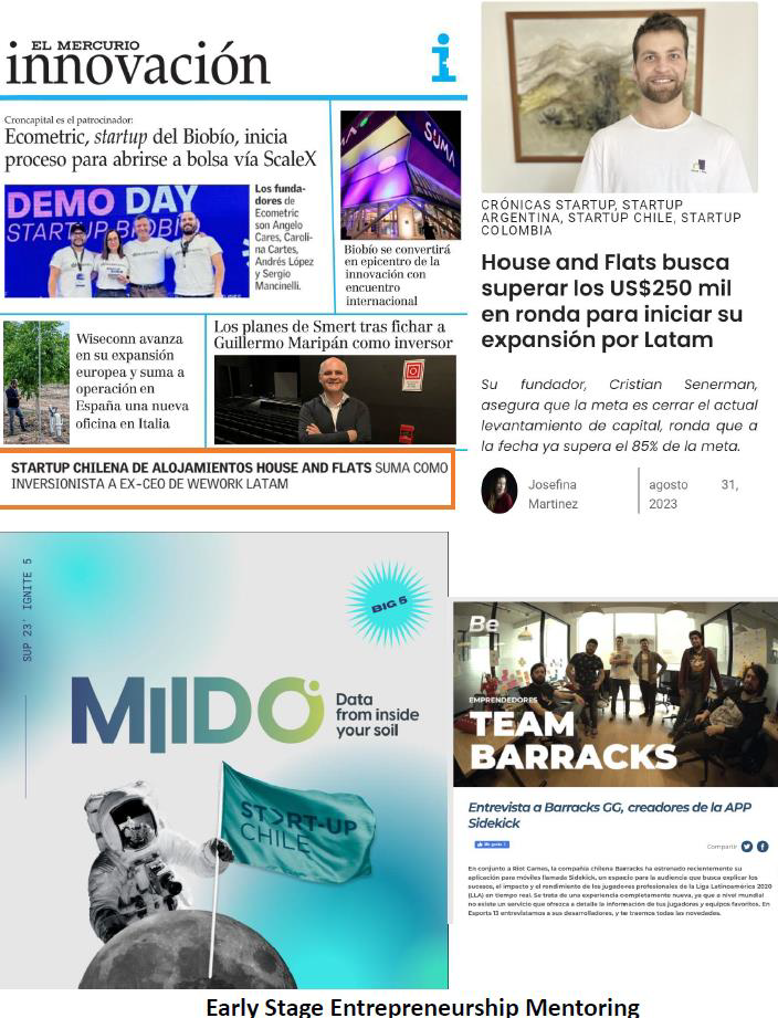 Como mentor certificado por la Universidad del Desarrollo, he acompañado a diversos emprendimientos tecnológicos en etapas iniciales, ayudándolos a transformar ideas en modelos de negocio sólidos, escalables y con propósito. Basándome en mi propia experiencia como emprendedor y consultor, he guiado a startups como House & Flats, Barracks, MiDO, rFAZT y Bumed SpA, apoyándolas en procesos clave que van desde la validación estratégica hasta la atracción de capital y la expansión internacional. Mi enfoque combina visión de mercado, sostenibilidad y tecnología para activar modelos que generen valor real para las personas y el planeta.